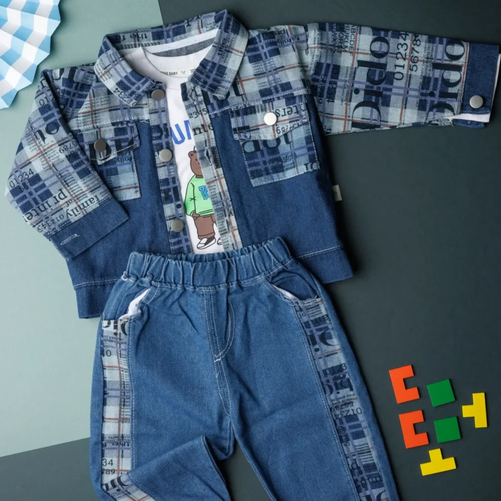 - 40 % Off Select options This product has multiple variants. The options may be chosen on the product page Quick View₹2,643.00Original price was: ₹2,643.00.₹1,599.00Current price is: ₹1,599.00.Layered to perfection, this 3-psc set features a cartoon print T-shirt, a classic shirt like jacket, and denim pants, A smart and Stylish combination for a polished yet stylish look. this jacket can be also wear reversibly 100% cotton T-shirt polyester Bottom material : Denim Regular fit Machine wash The […]