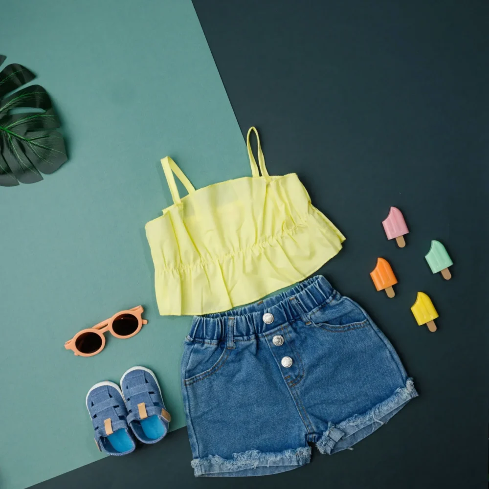 - 35 % Off Select options This product has multiple variants. The options may be chosen on the product page Quick View₹1,970.00Original price was: ₹1,970.00.₹1,280.00Current price is: ₹1,280.00.80% Cotton, 20% Polyester self design Top shoulder straps, sleeveless The actual product may differ slightly in color from the one illustrated in the images. WHAT’S INCLUDED: Top and Denim Shorts CARE : Machine Wash