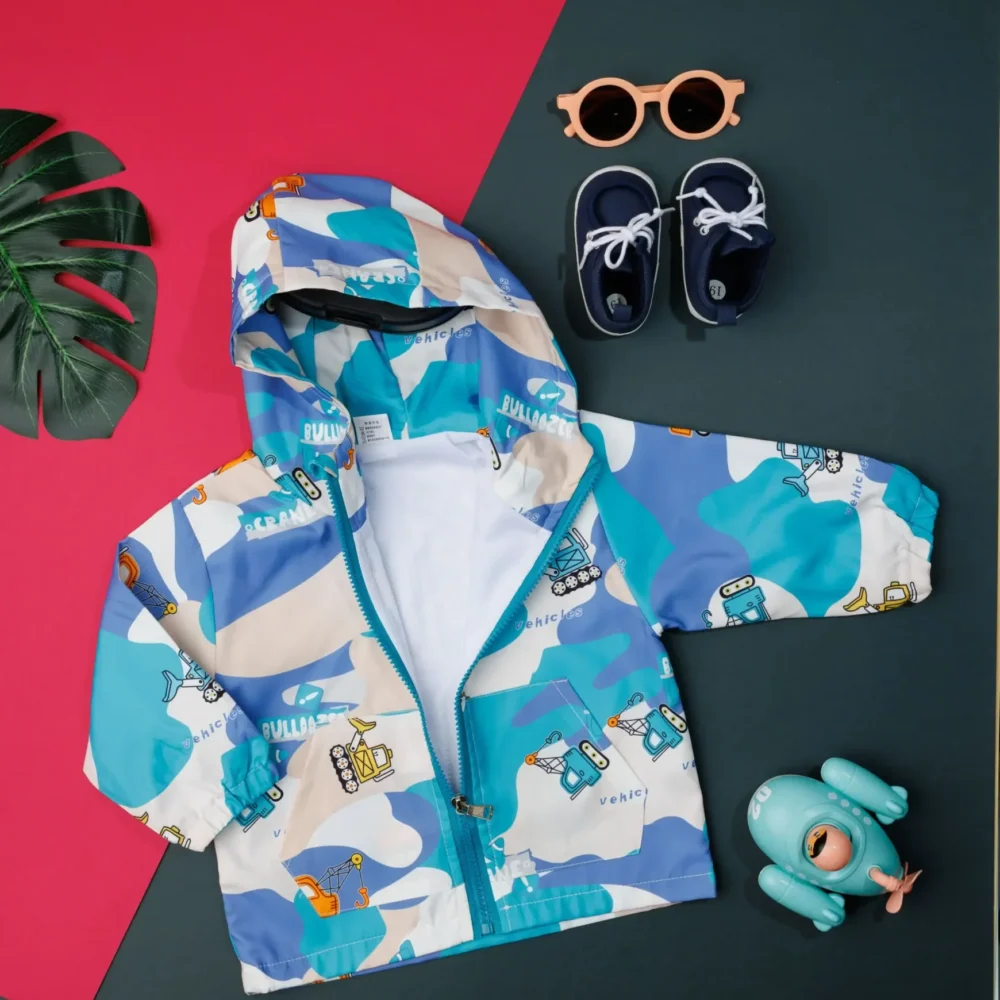 - 35 % Off Select options This product has multiple variants. The options may be chosen on the product page Quick View₹1,296.00Original price was: ₹1,296.00.₹842.00Current price is: ₹842.00.100% polyester full sleeve “vehicle” printed The actual product may differ slightly in color from the one illustrated in the images. WHAT’S INCLUDED: Sky blue jacket with vehicle pattern CARE : Gentle wash