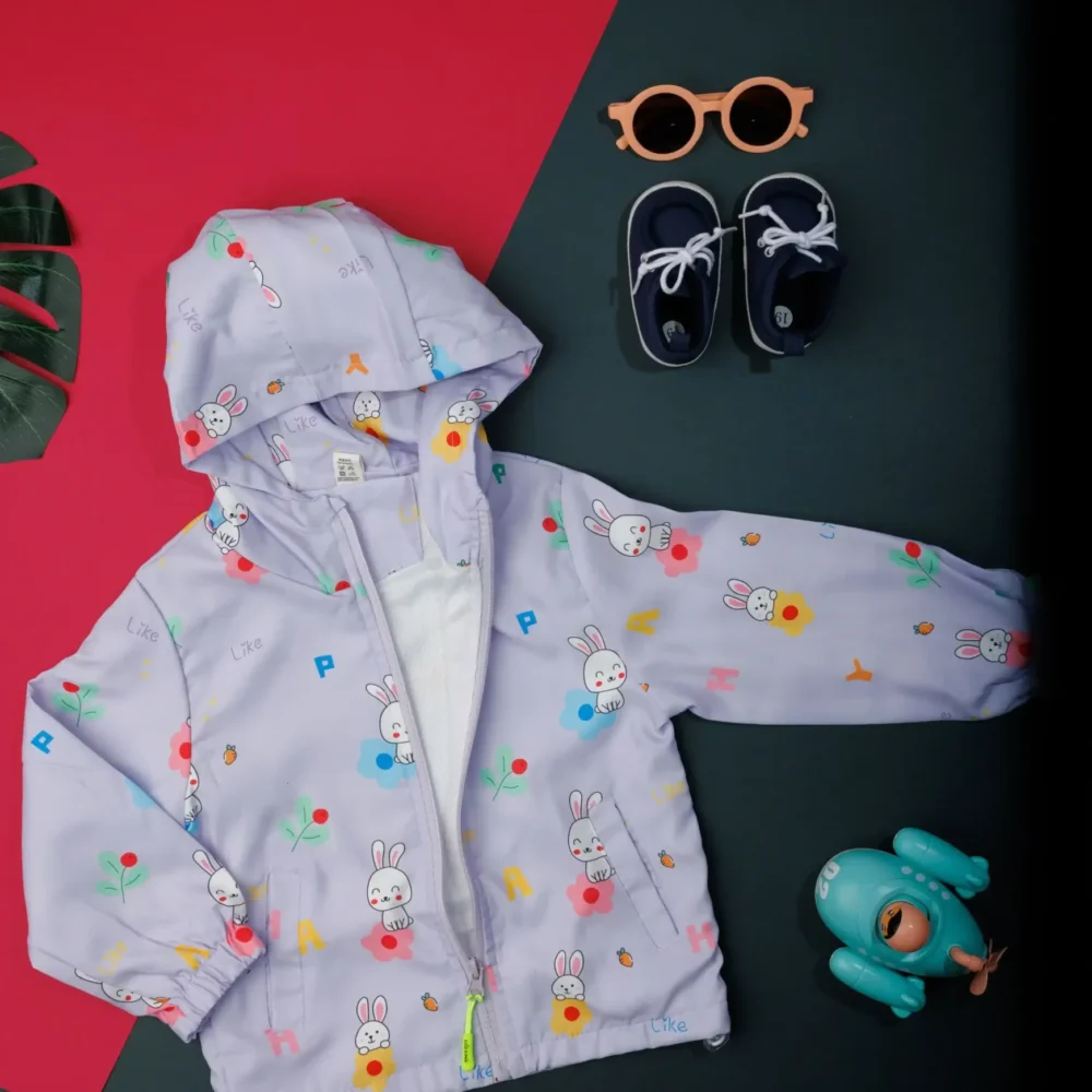 - 35 % Off Select options This product has multiple variants. The options may be chosen on the product page Quick View₹1,296.00Original price was: ₹1,296.00.₹842.00Current price is: ₹842.00.100% polyester full sleeve rabbits, cherries, and the letter “P” printed The actual product may differ slightly in color from the one illustrated in the images. WHAT’S INCLUDED: light purple children’s windbreaker jacket CARE : Gentle wash