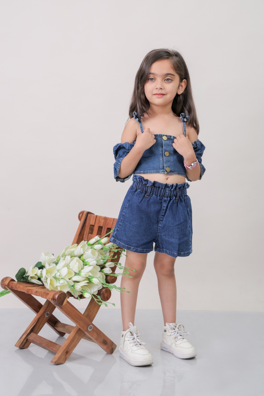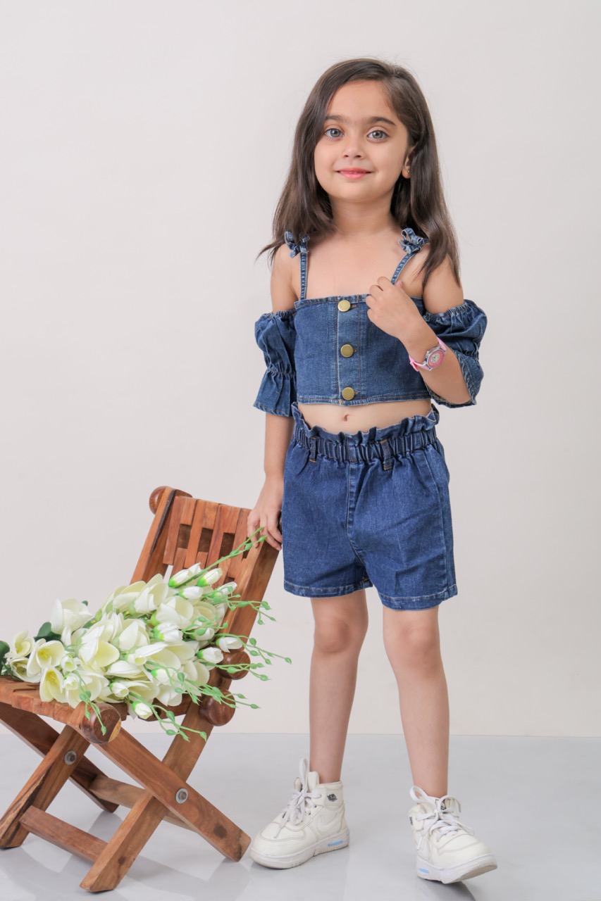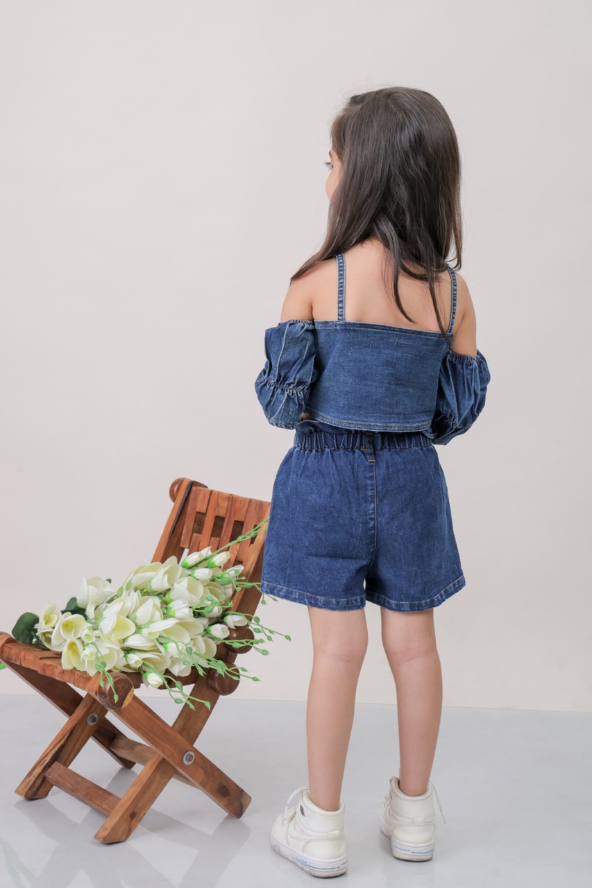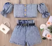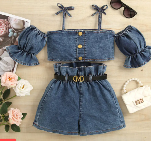 Denim Blouse with Denim Shorts With Belt