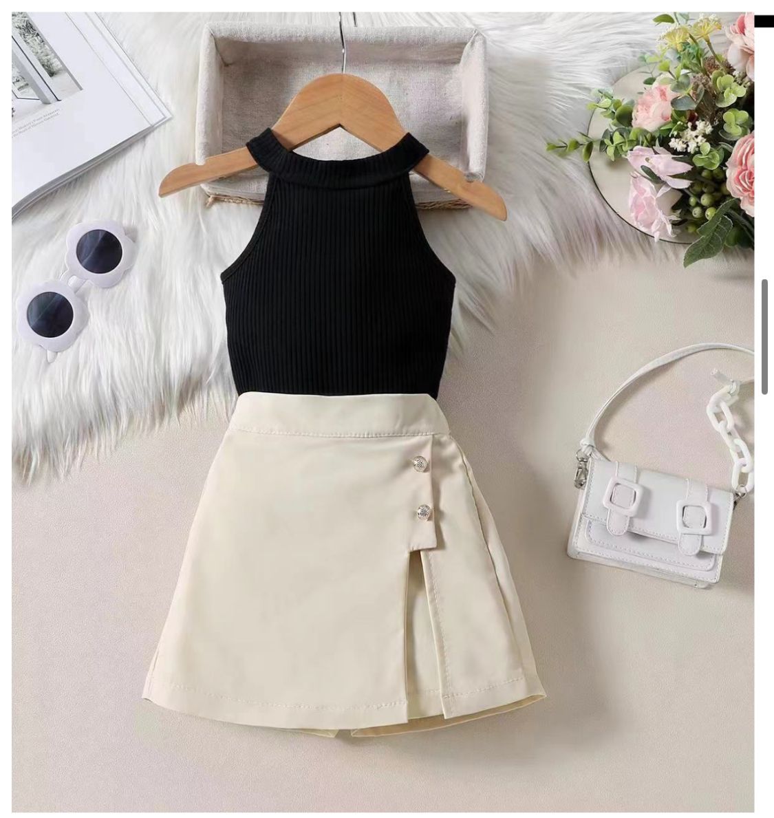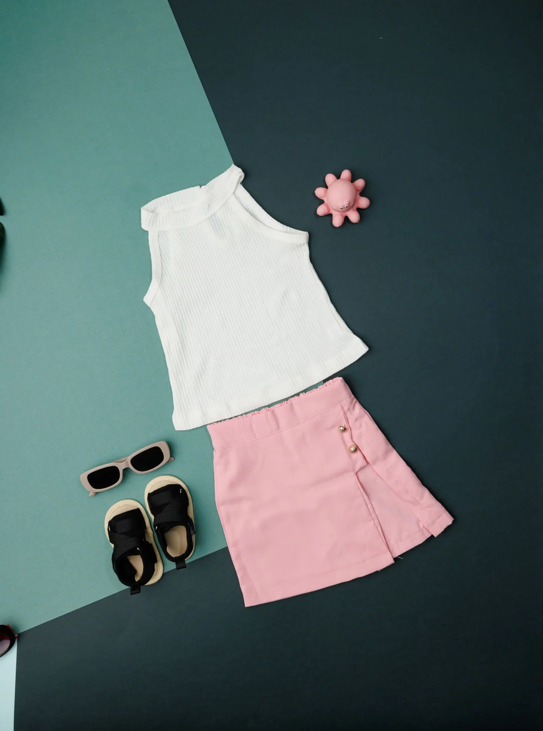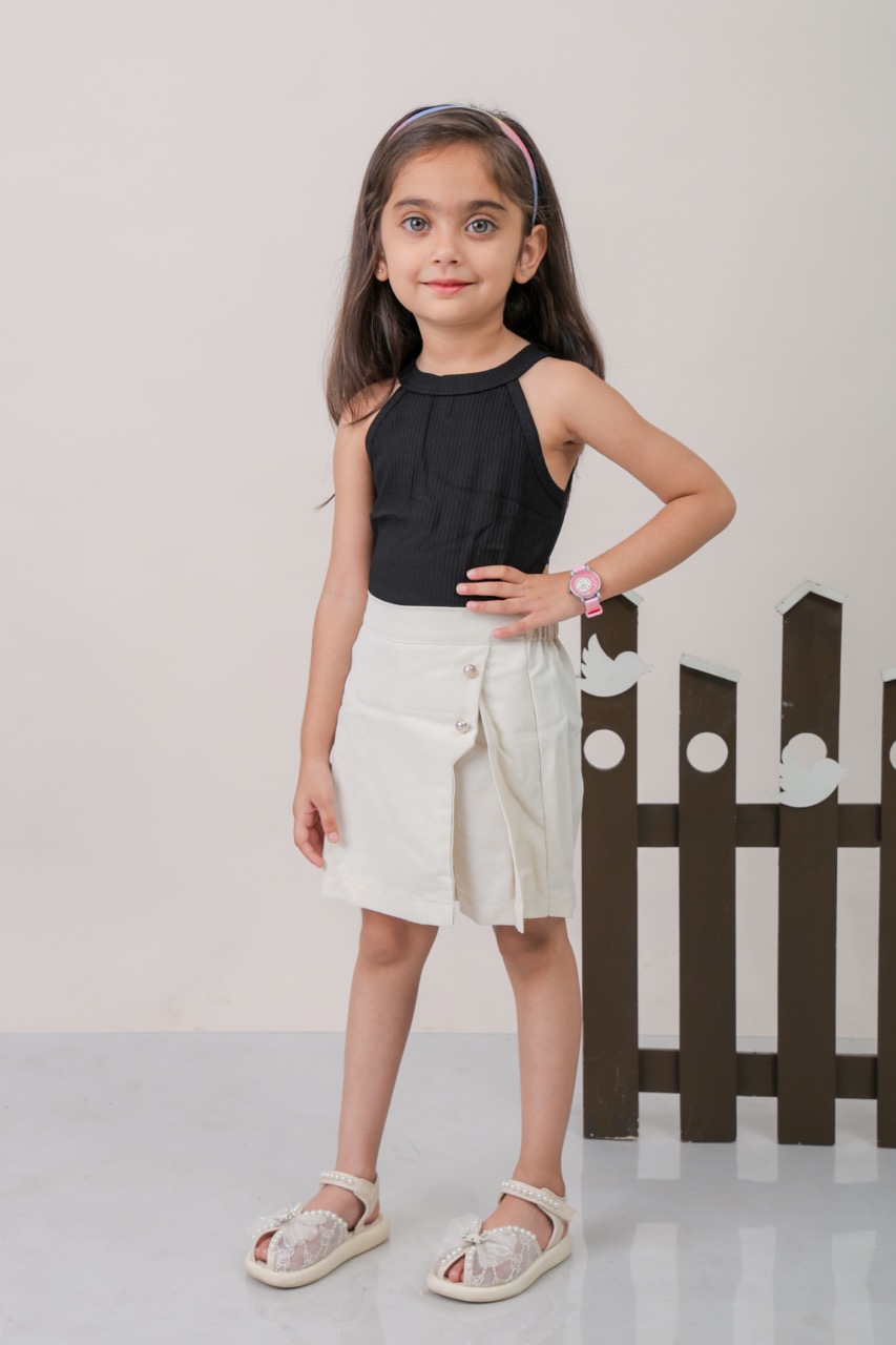 - Combines a top with a skirt