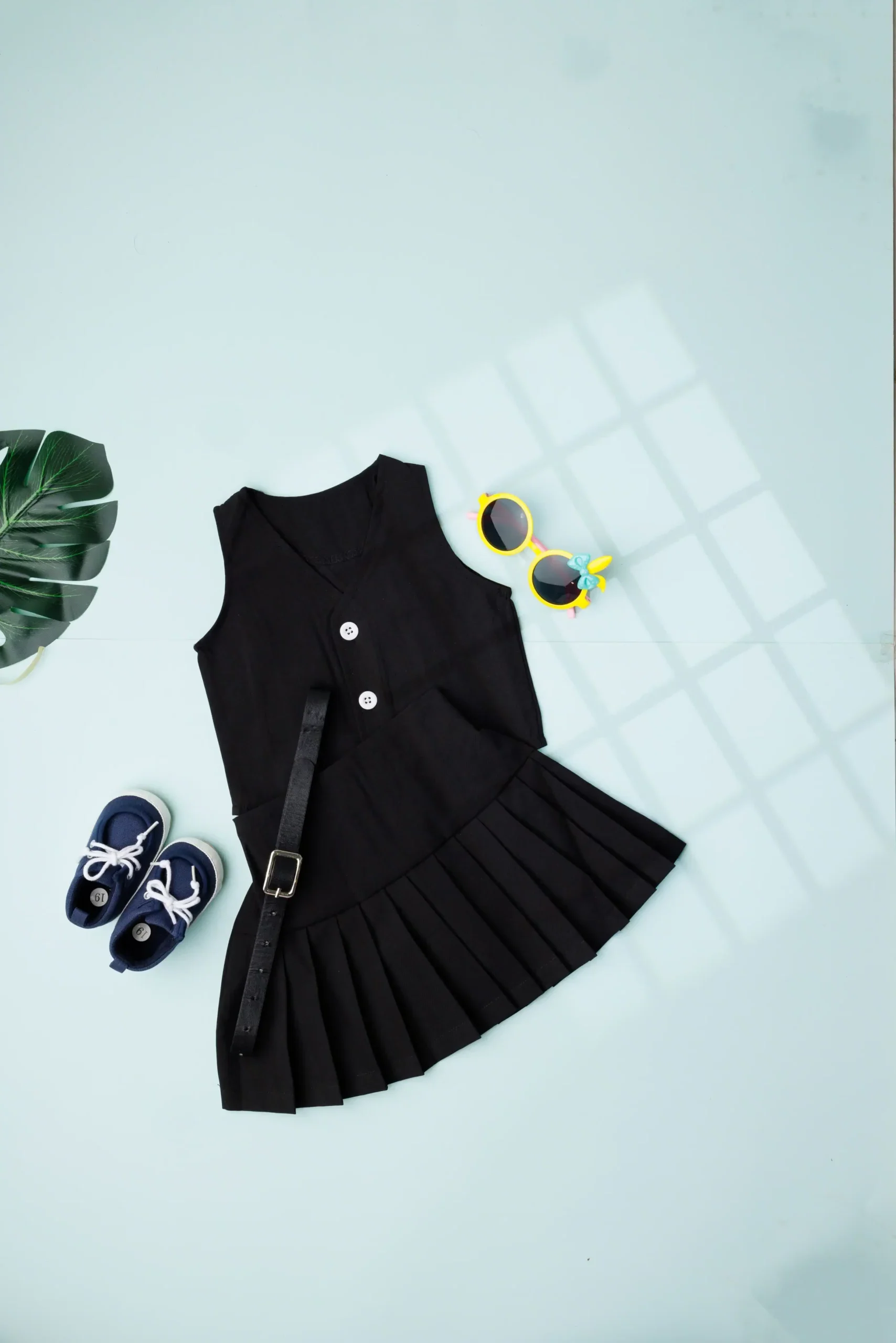 Waistcoat Top With Pleated Skirt with belt