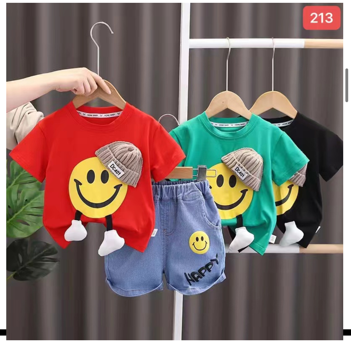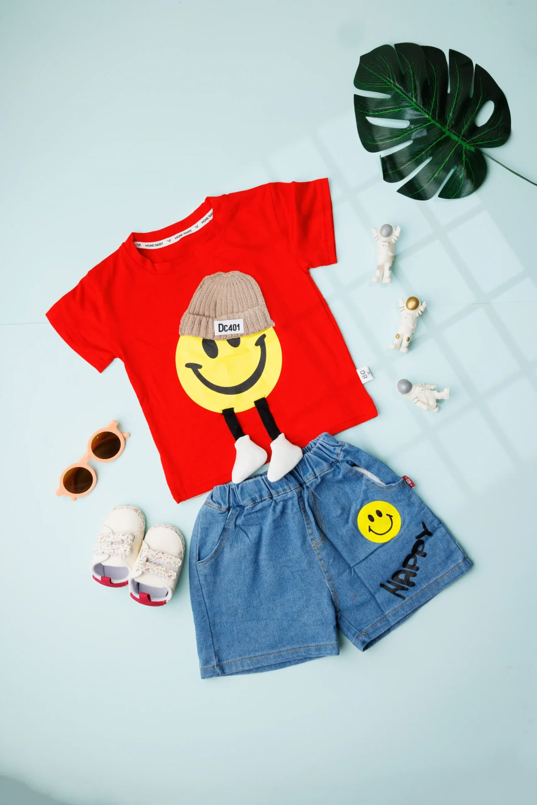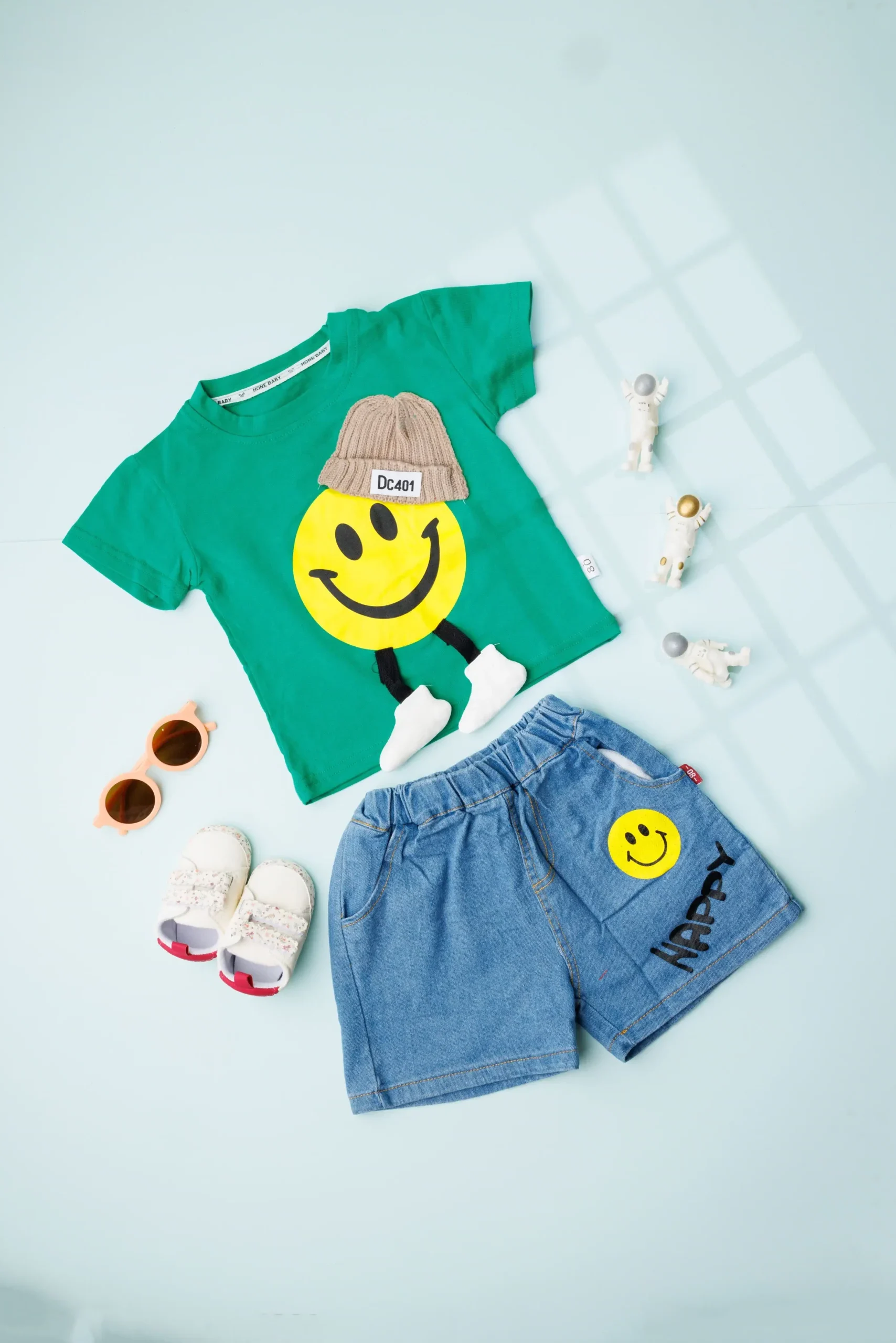 •  smiley t-shirt with denim short