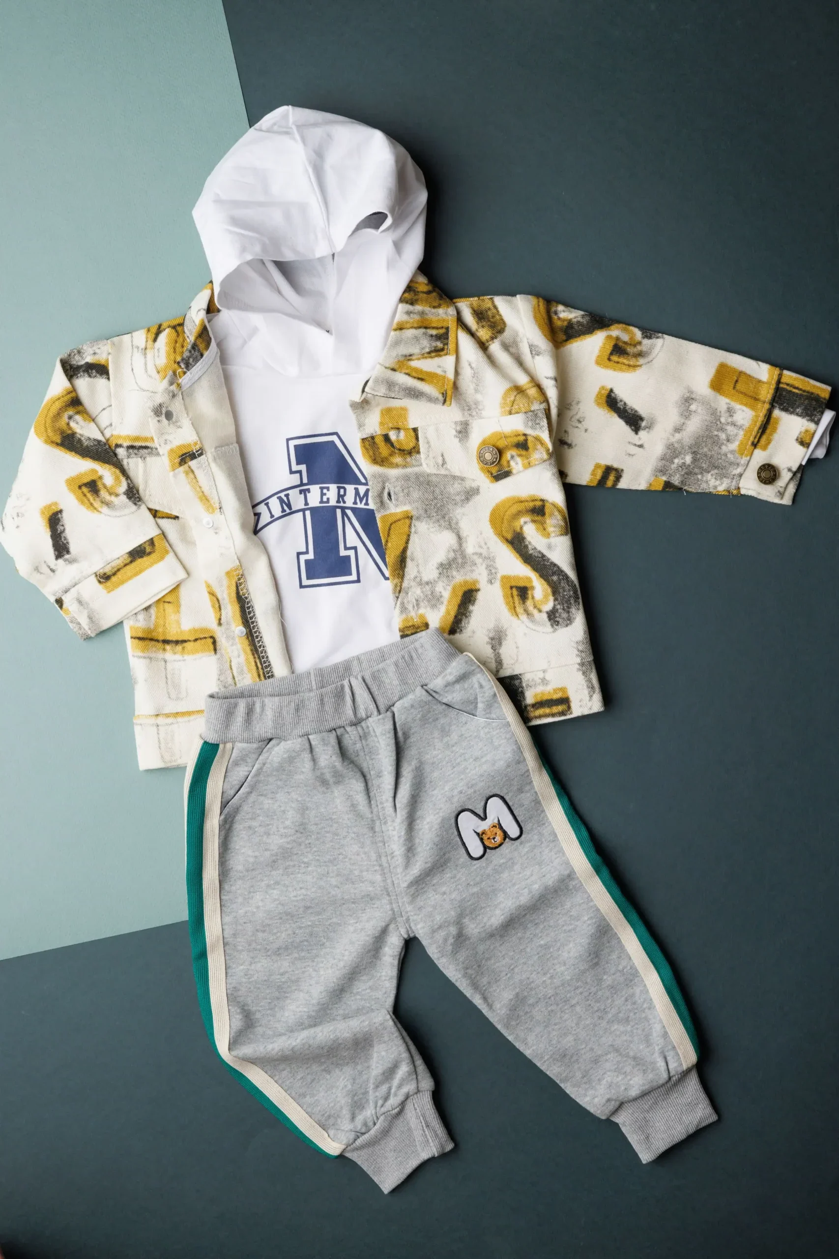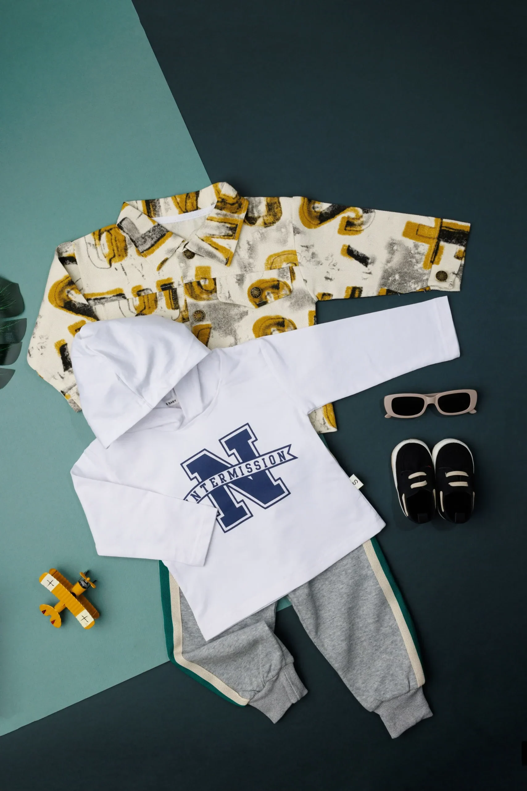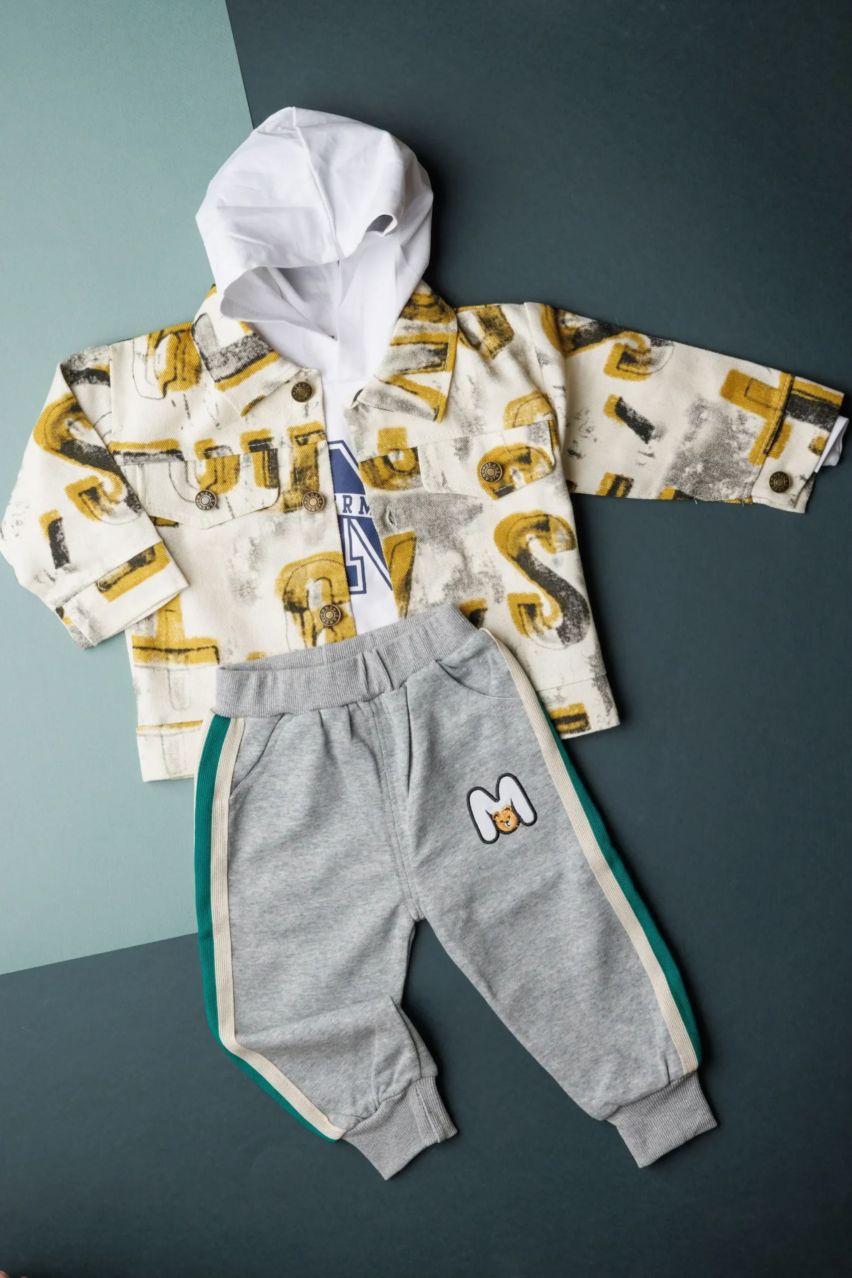 Layered to perfection, this 3-psc set features a hoodie T-shirt, a classic shirt, and trouser, A smart and Stylish combination for a polished yet stylish look.