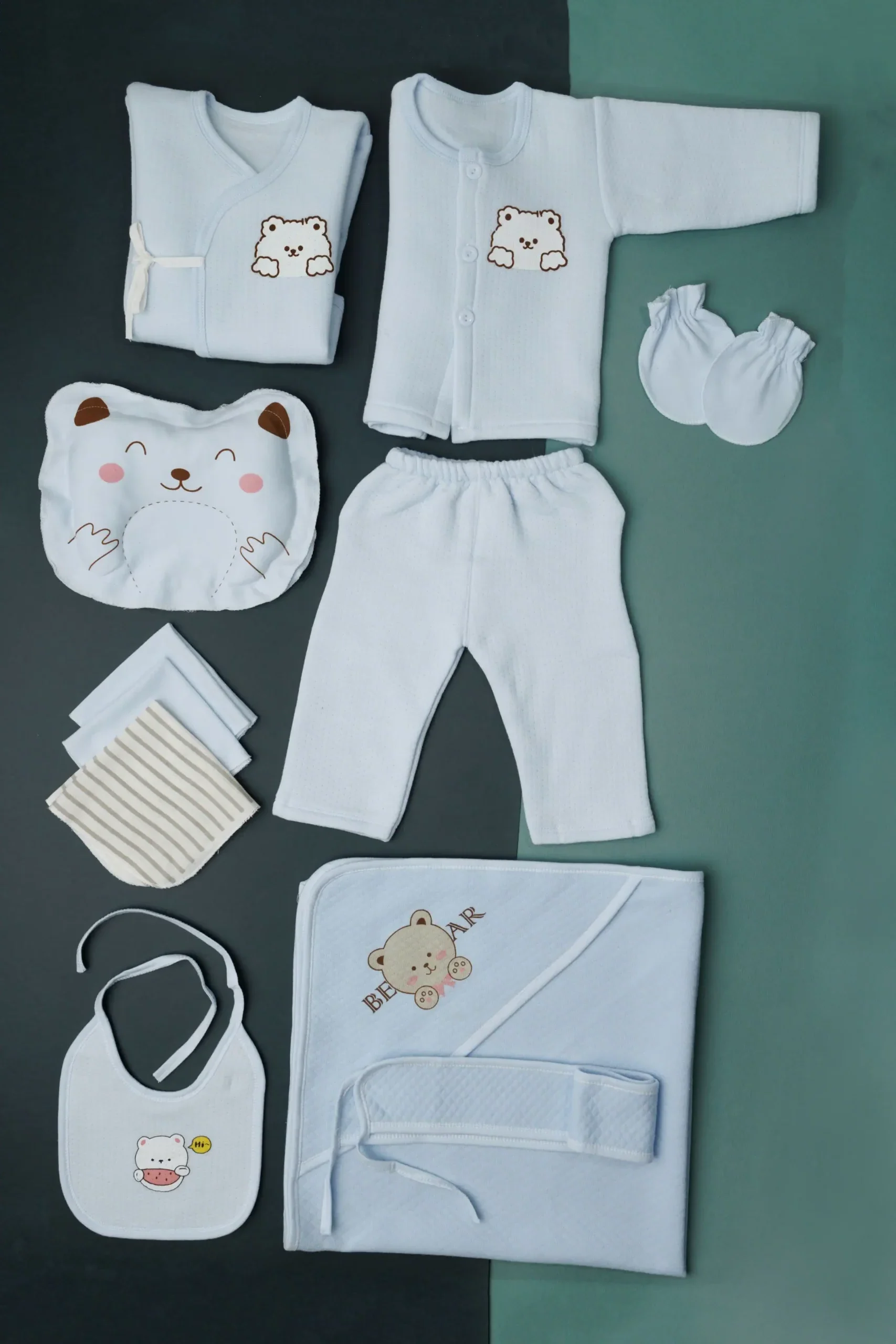 These sets are designed to provide essential clothing and accessories for a newborn baby, often used when leaving the hospital after birth.