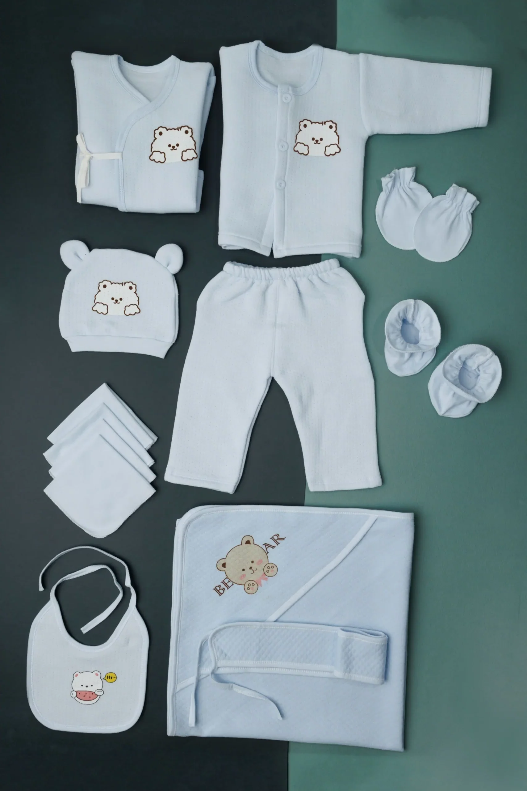 his set appears to be designed for a newborn, featuring soft, comfortable fabrics and a simple design.