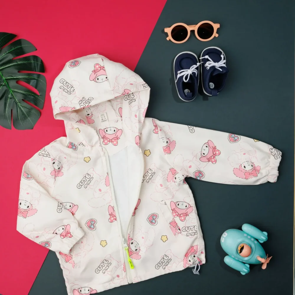 100% polyester full  sleeve “CUTIE” printed The actual product may differ slightly in color from the one illustrated in the images.   WHAT’S INCLUDED: Carter’s Toddler Minnie Mouse Rain Jacket CARE : Gentle wash