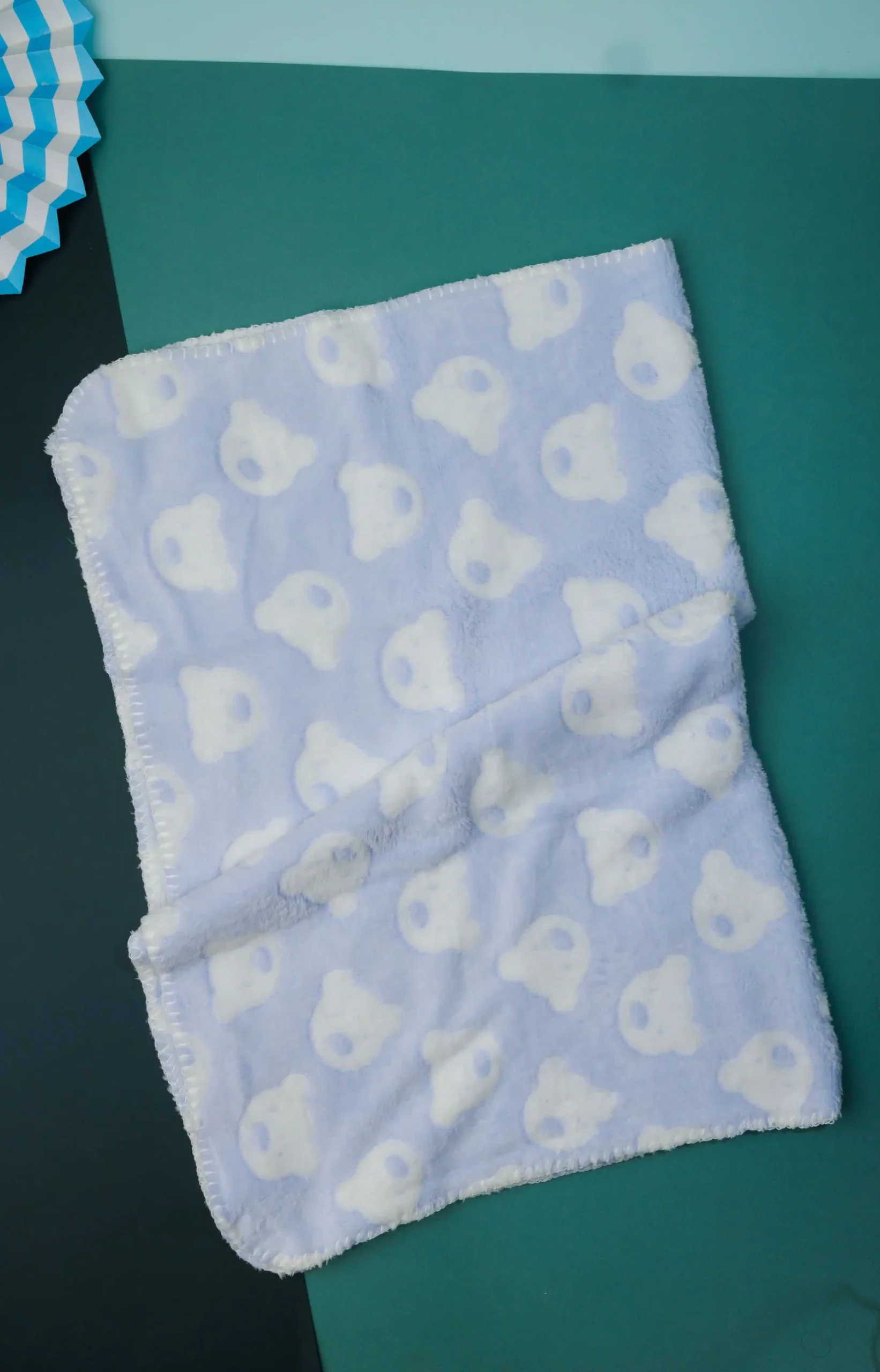 - The blanket appears to be made of a plush material, possibly fleece or a similar fabric.