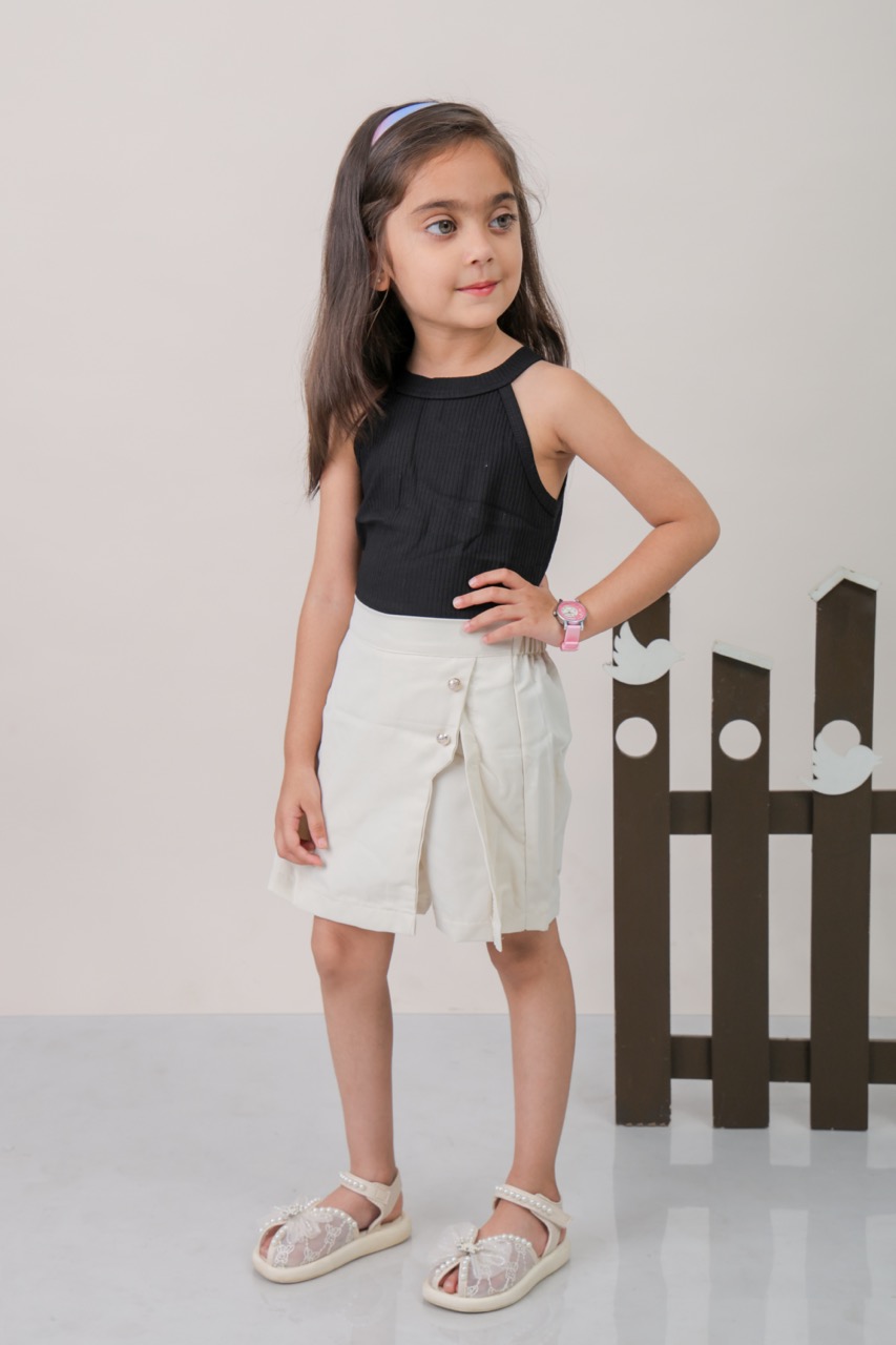 - Combines a top with a skirt