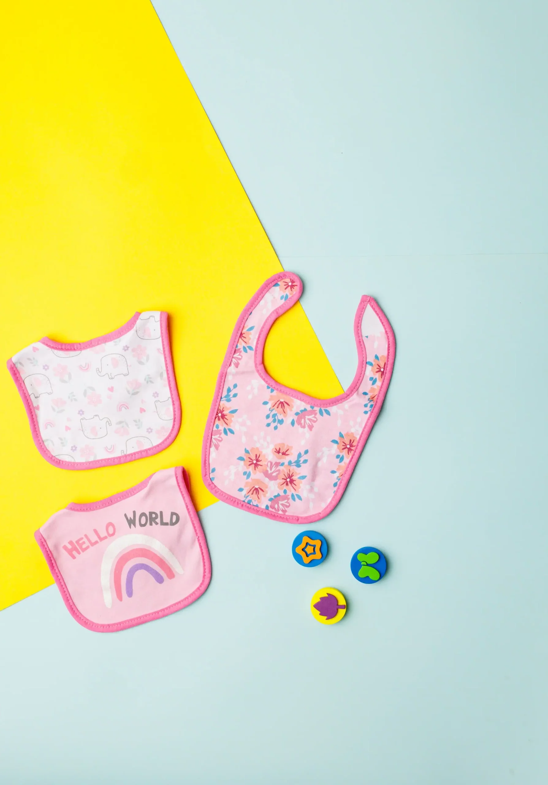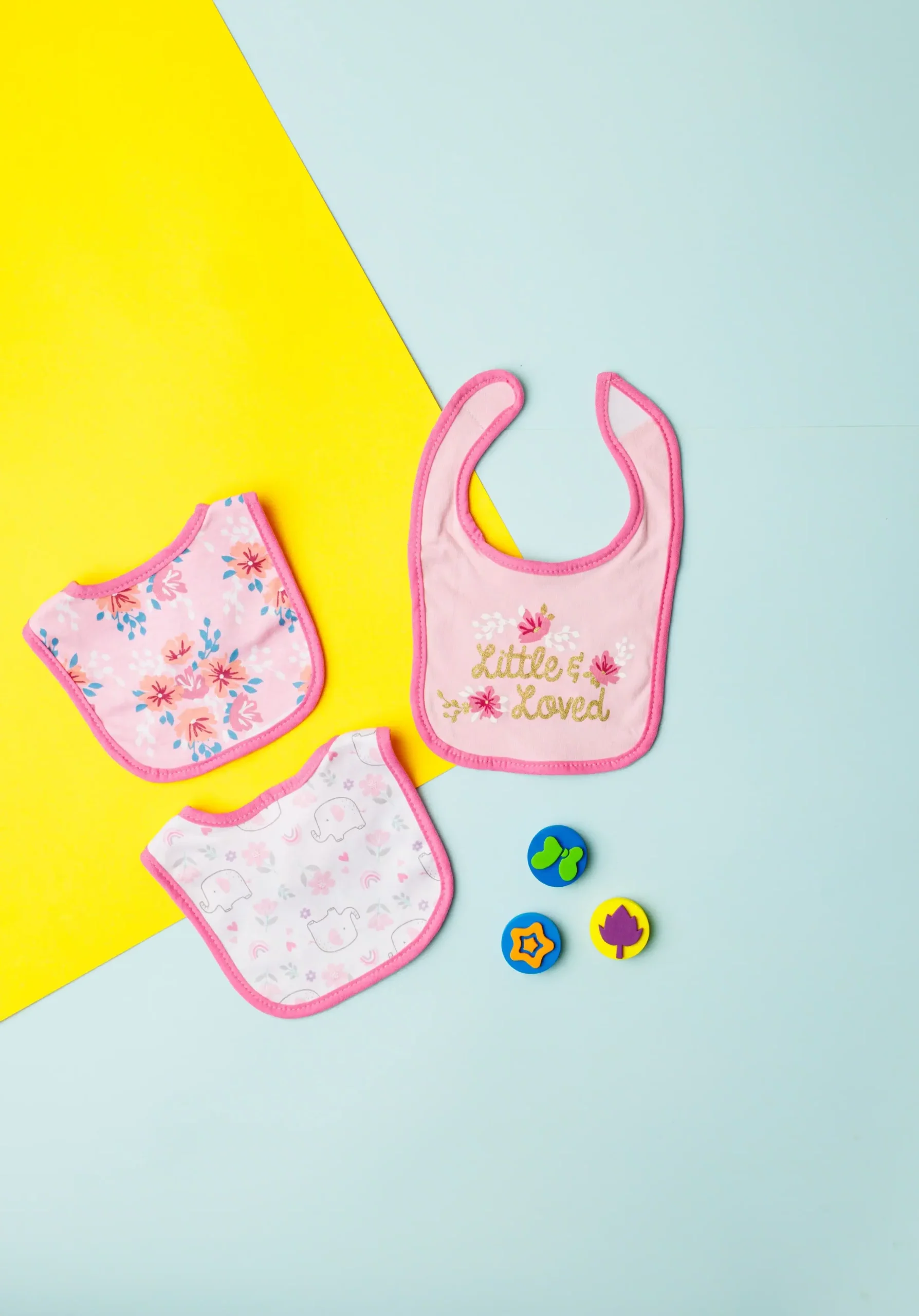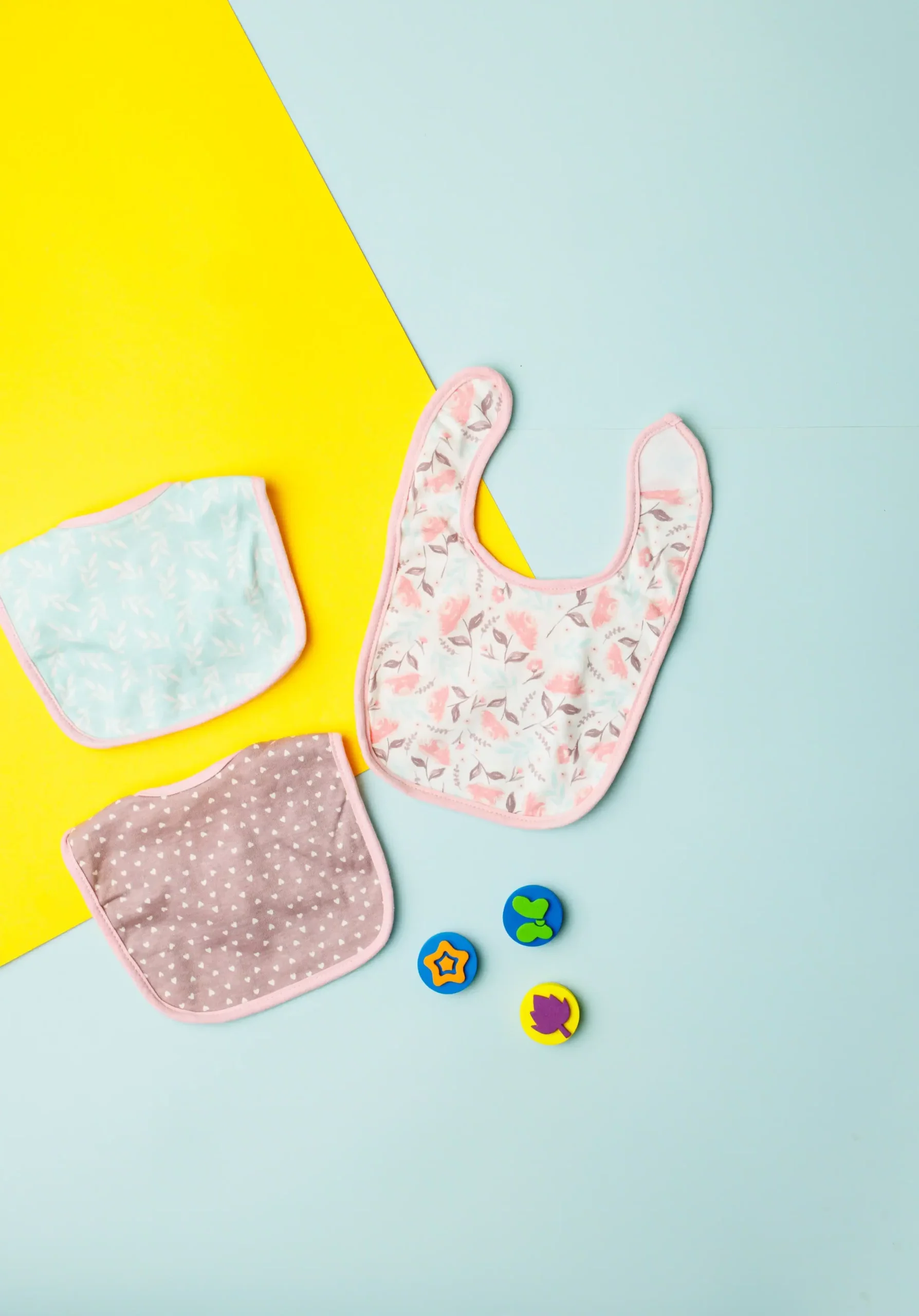 - The bibs are designed with different patterns and colors.